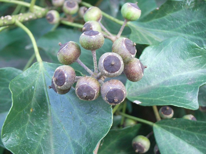 果実は直径1センチ弱の球形の液果が丸く散形状に集まったもので、