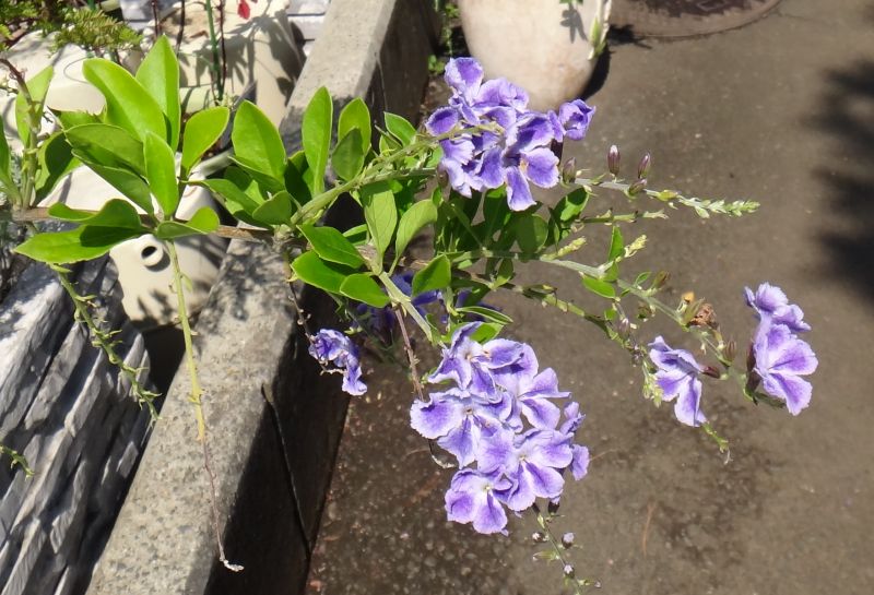 葉は卵形で、淡青紫色の花のある集散花序が多段になってつく。