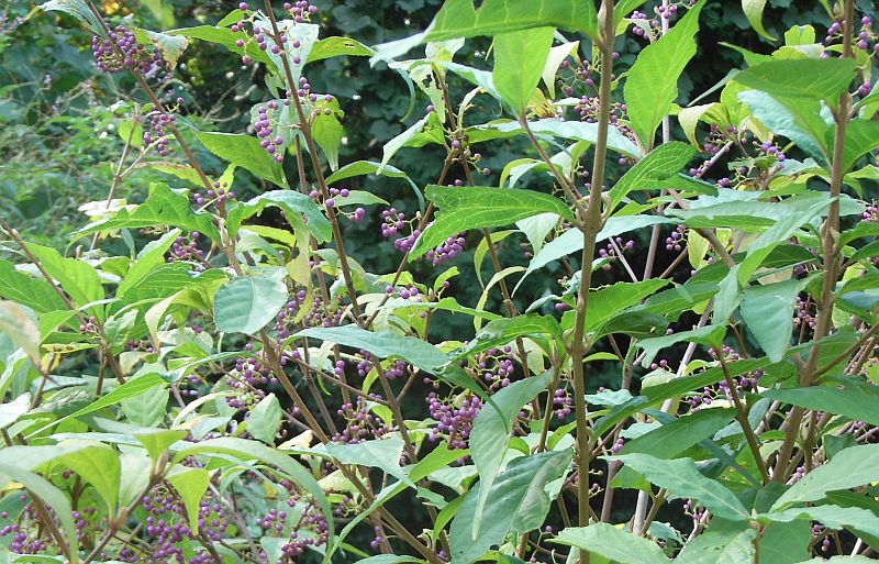 秋に3ミリぐらいの球形の薄紫をした実が多数群がってつく