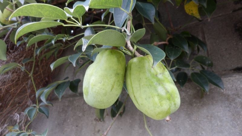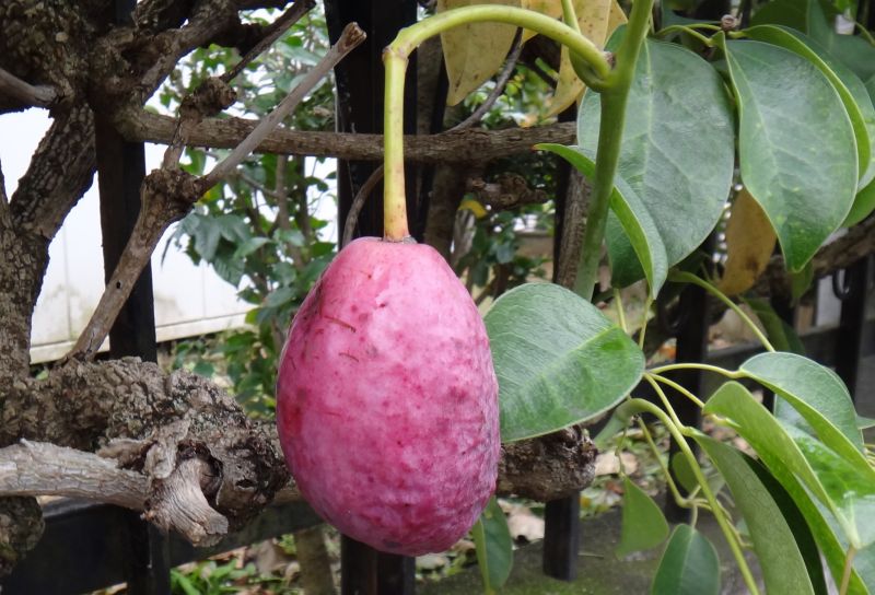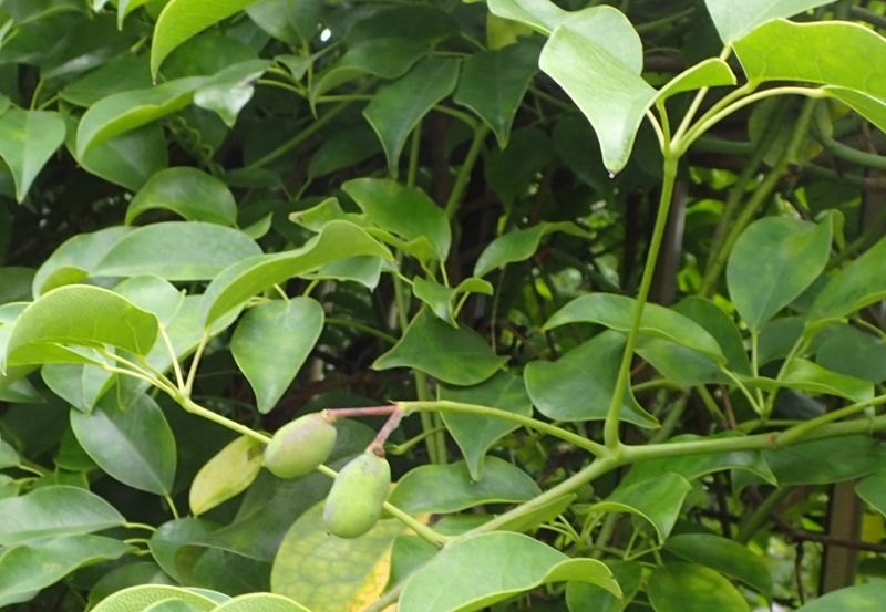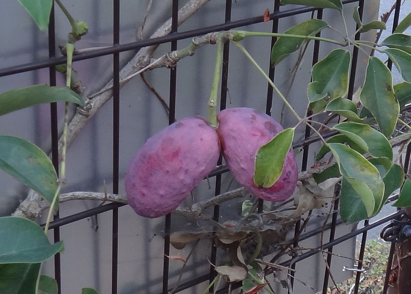 果実は長さ5〜8センチの卵円形で、秋に紫色に熟すが、