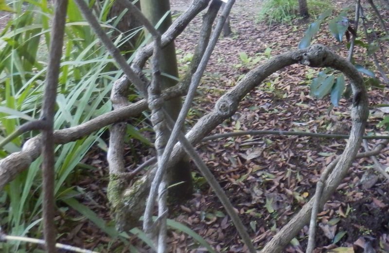 枝をのばして他の木などにからむ。