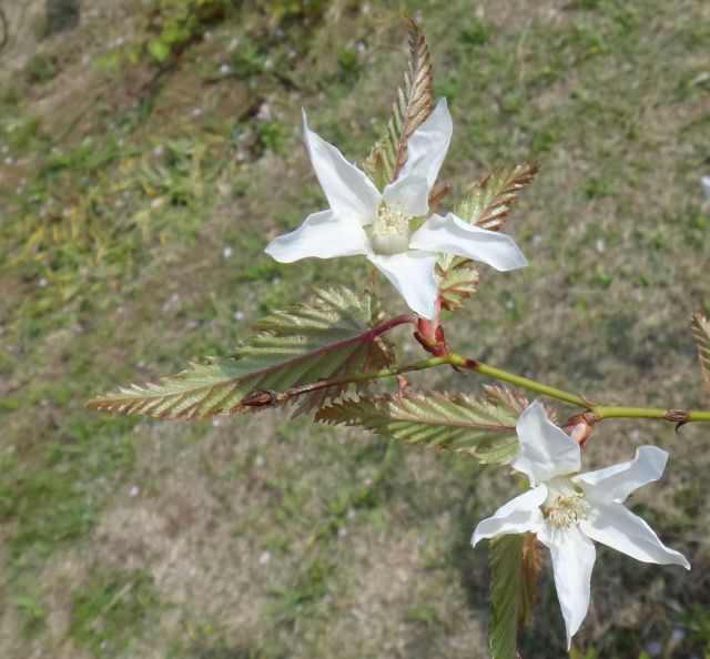 花は5弁で、葉脈は葉裏に隆起する。(2017/4/13)