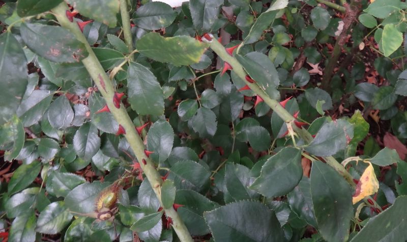 この棘は、葉が変形したものであるため、枝先から根元の方向へ