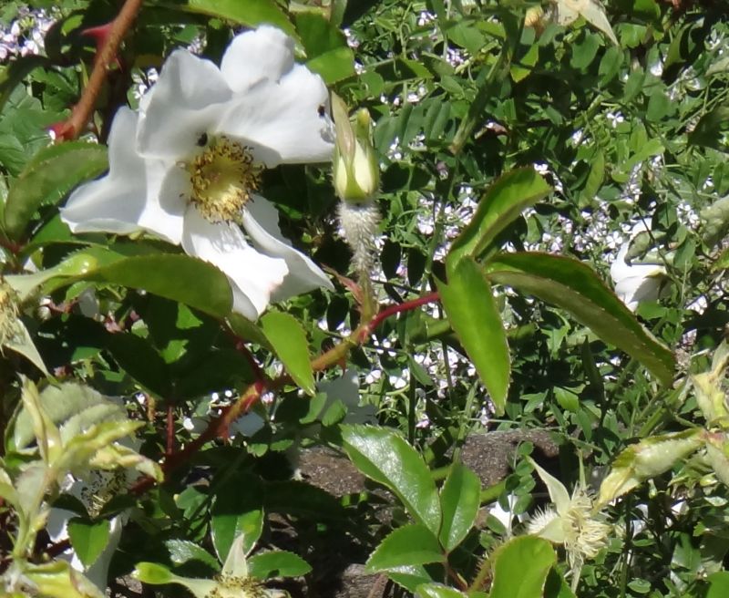 萼筒や花柄に小さい棘が密生する。小枝には大きい棘と小さい棘がある。(2016/4/29)