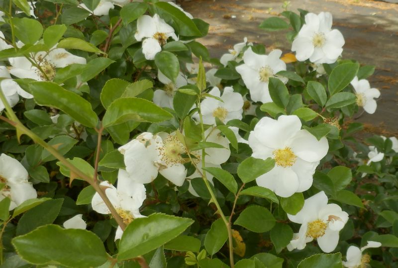 バラ属、つる性、常緑、低木。