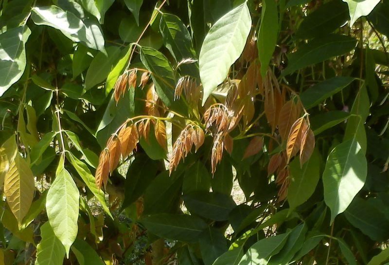 奇数羽状複葉が互生し、小葉は長さ2〜6センチの卵形で、