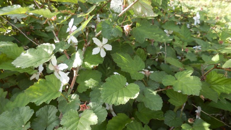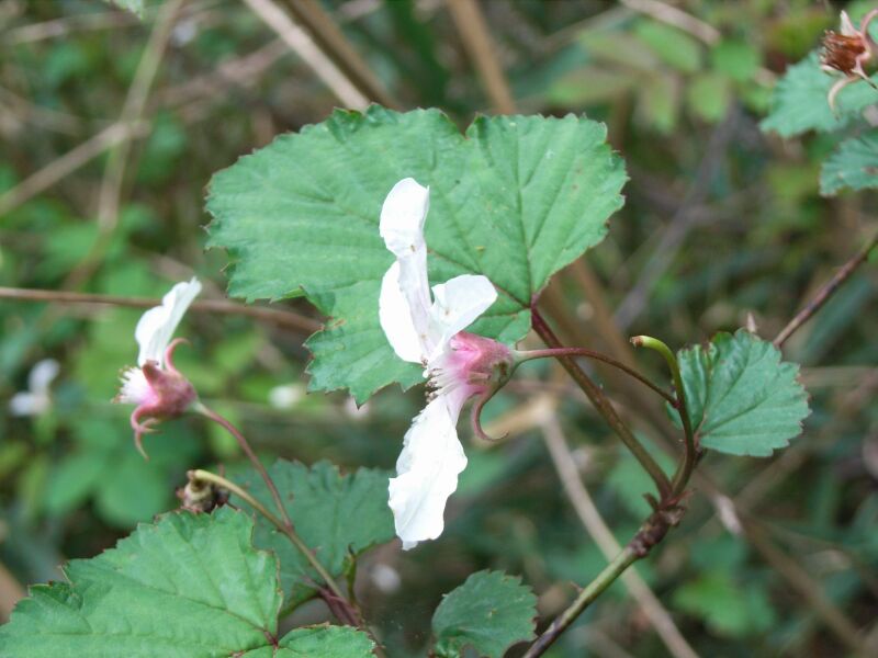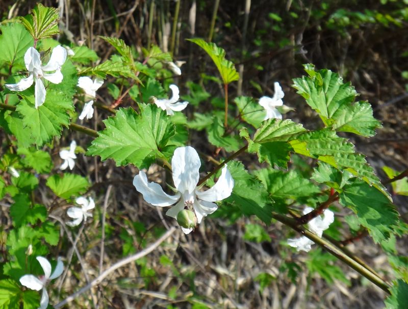 5弁で直径2〜2.5センチある白い花が数個上向きにつく。