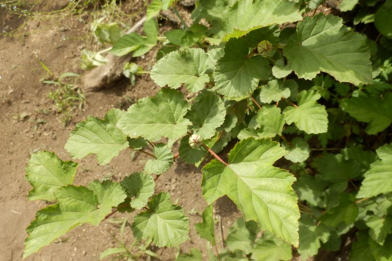 蕾。葉は広卵形で3裂するものが多いが、いろいろの変異がある。(2015/5/6)