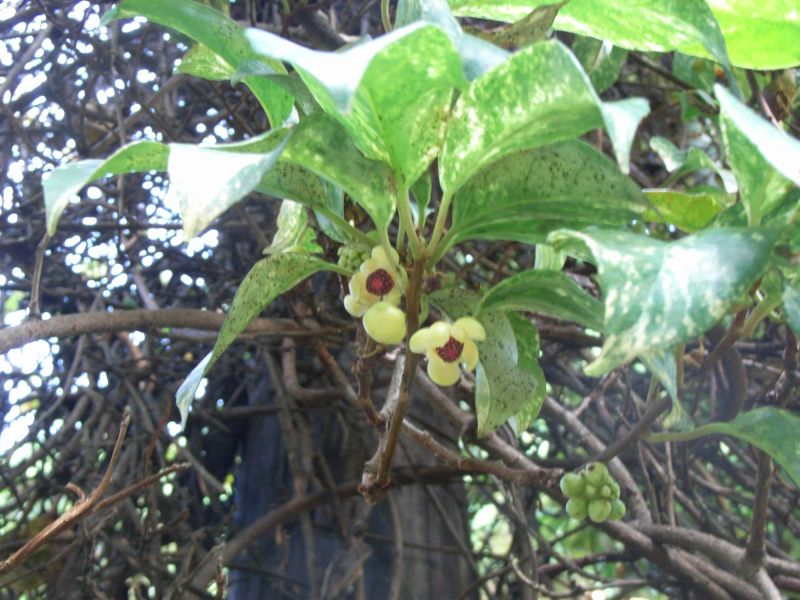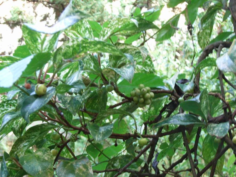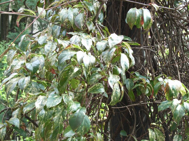 立木にからむつる植物であるが、必ずしも巻き付くのではなく、木質である。