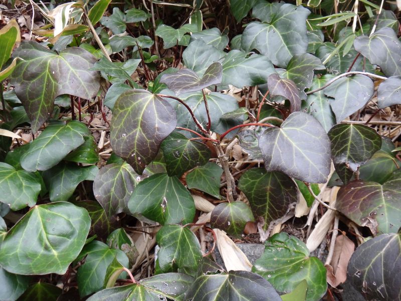 キヅタ(ヘデラ)属、常緑、つる性、低木。