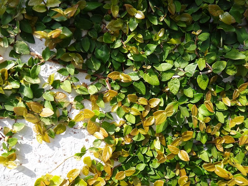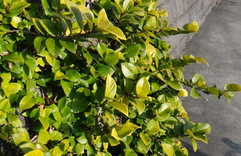 岩や壁に張り付いている葉は小さいが、伸びあがった枝の葉は大きくなる。