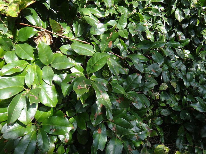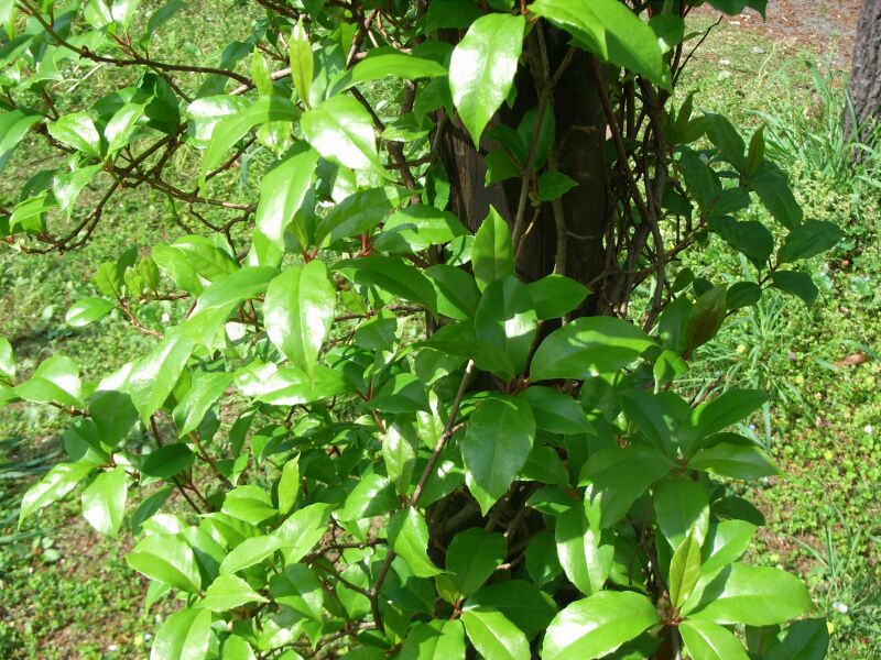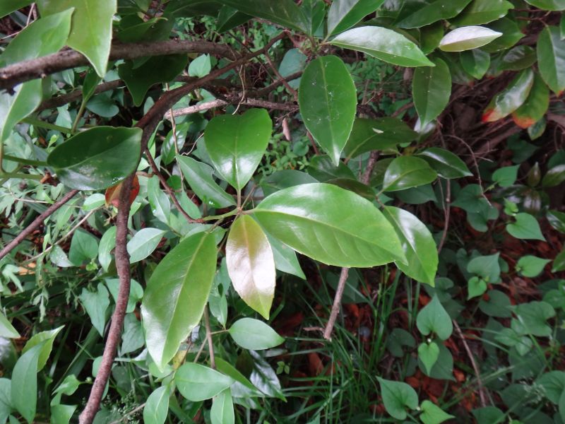 葉は尖った楕円形で、革質で光沢がある。(2015/5/16)