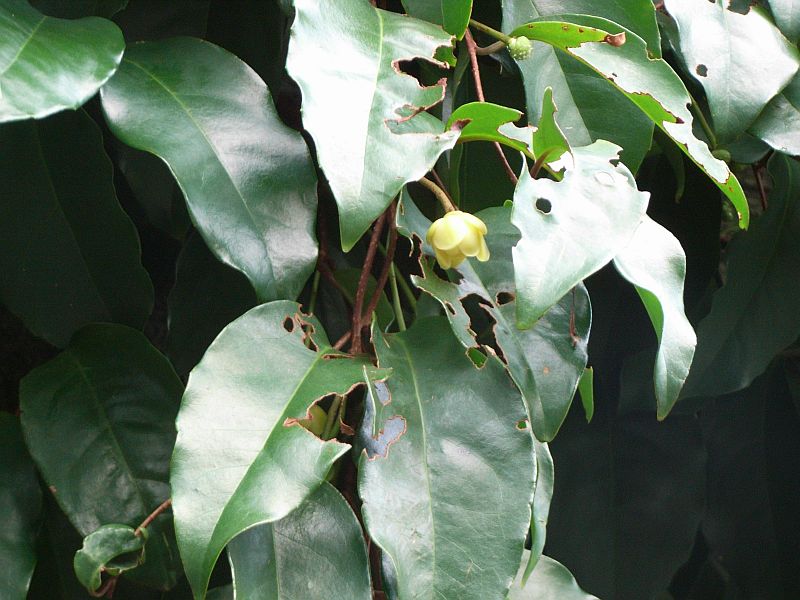サネカズラ :モクレン科低木で棘もつるもなく、茎の皮下に粘液を持つ。