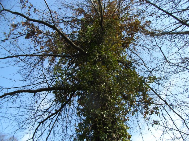 高い木にとりついたサネカズラ。