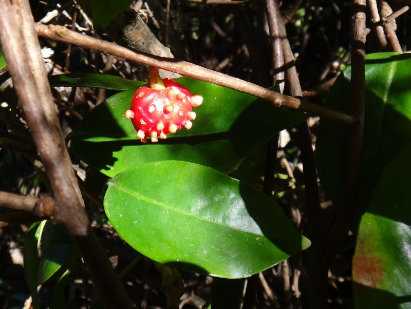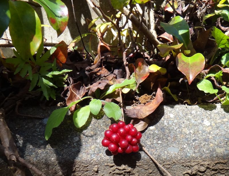 液果が落ちたあとも赤い花床が残る。(2015/12/5)