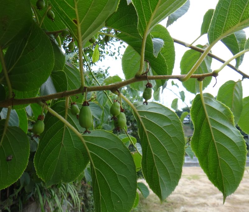 楕円形の液果ができる。キーウイフルーツに似ているが、表面に毛がない。