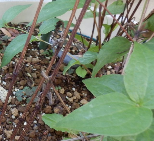 茎は針金のようで、葉柄が巻いて木や草にからみつく。