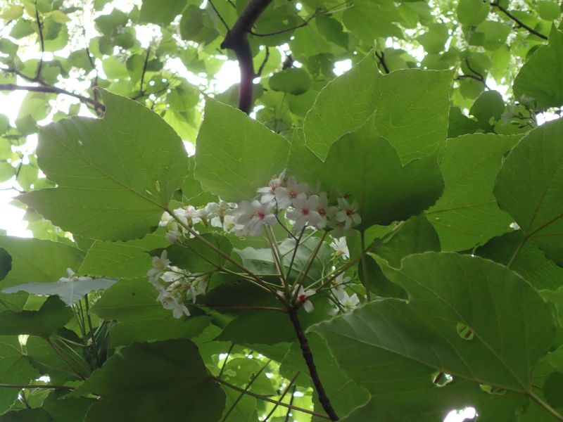 葉は広卵形で3浅裂することが多く、白い花が円錐状に咲き、