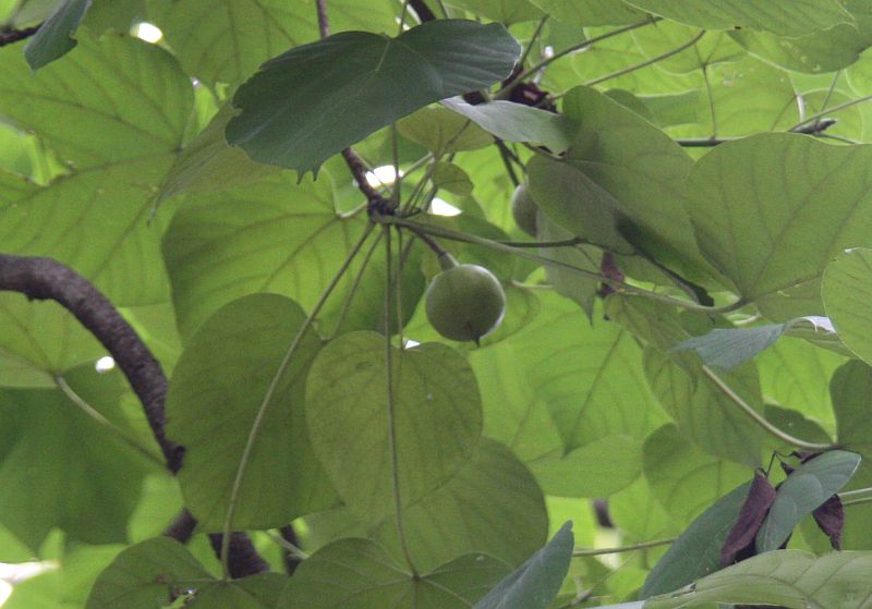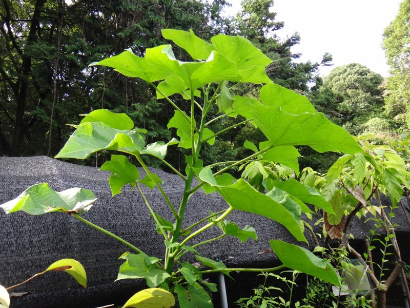 葉は卵心形で、星形の厚い果実ができ、円盤状の種子が出る