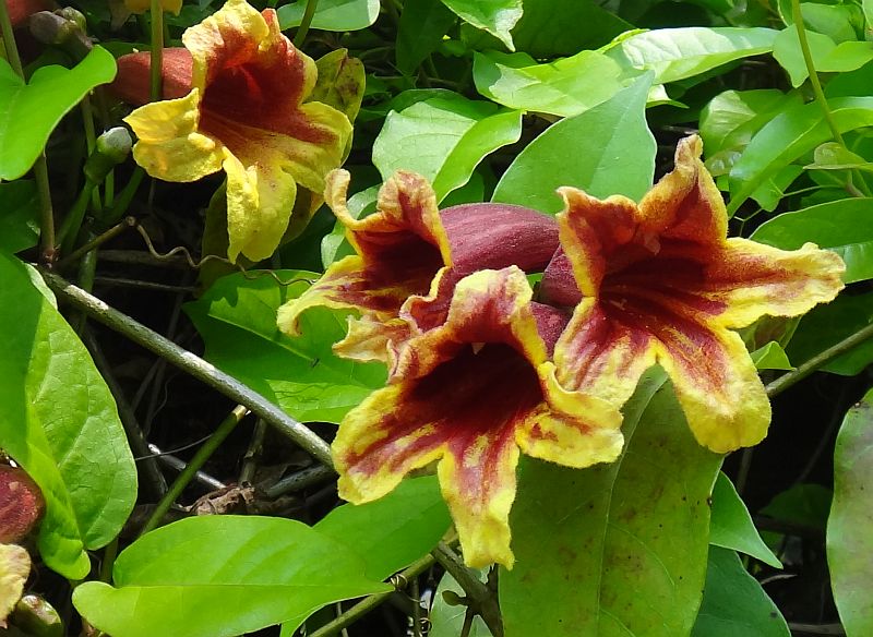 葉は3出複葉で対生するが、頂小葉は巻きひげとなっているので、