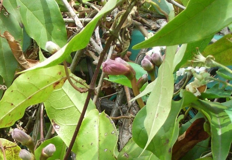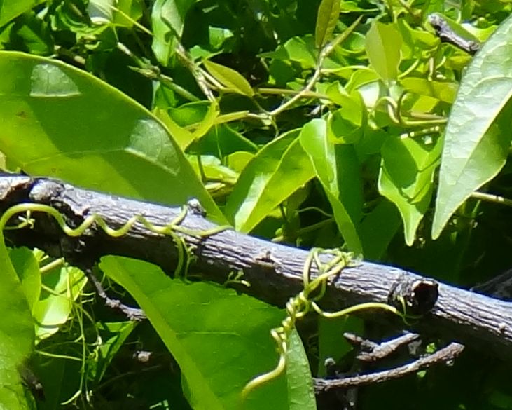 つる性で巻き付くだけでなく、吸盤で岩や壁面にもはりつく。