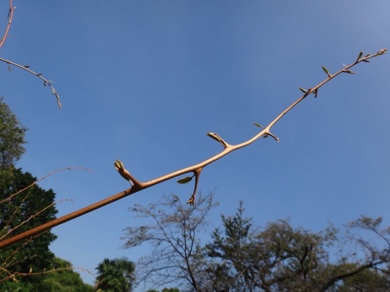 枝は少し太くなると(後ろ向きでなく)横向きにのびる。