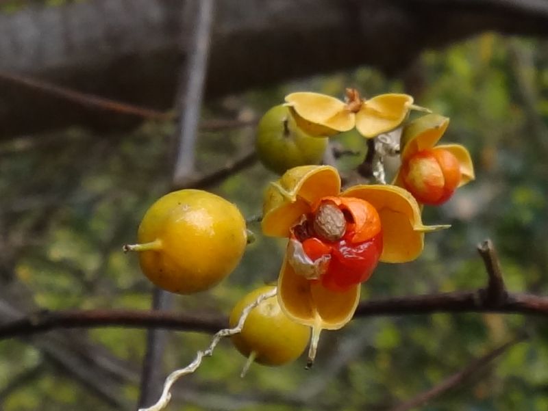 刮ハは黄色く熟すにつれて3裂し始める。(2011/11/13)