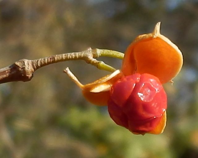 3裂して橙赤色の仮種皮につつまれた種子が出る。