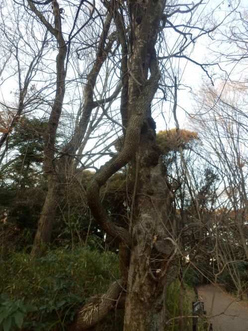樹皮は灰褐色で、不揃いな割れ目がある。(2015/11/30)