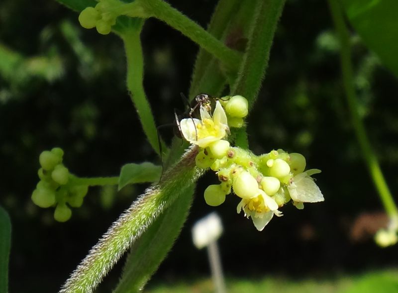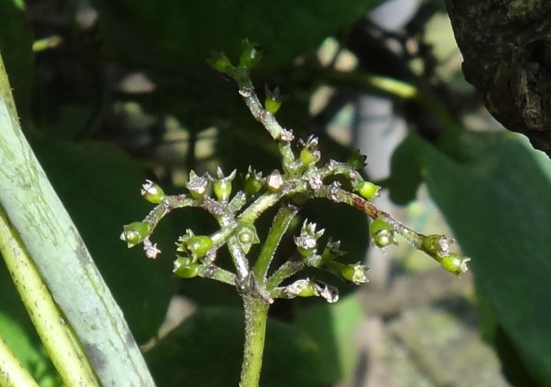 雌雄異株が多く、枝先や葉腋の円錐花序に淡緑色の小さい花をつける。