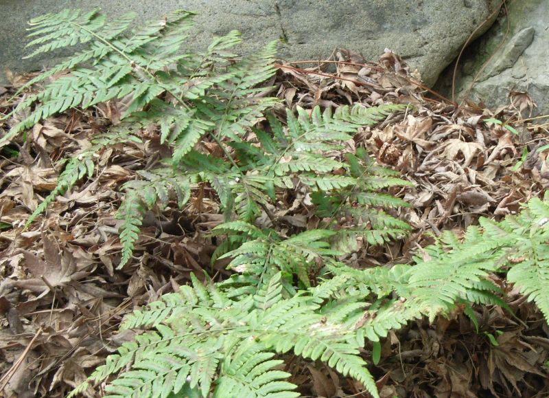 根茎は短くて斜上する。 葉は束生し、葉柄基部に黒褐色の細長い鱗片がつく。