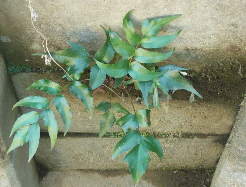 先の尖った卵形の羽片が対生する。