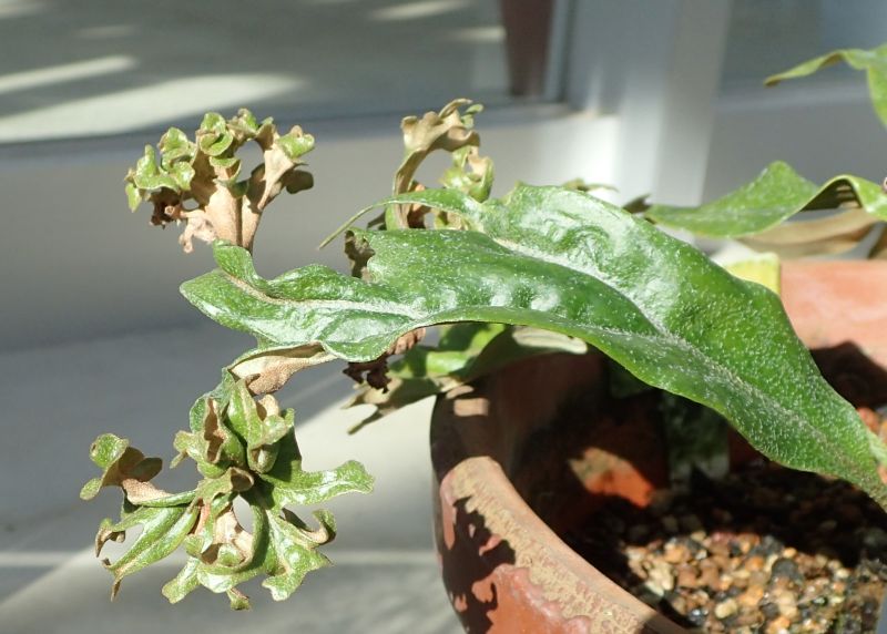 葉裏の一部に赤褐色の胞子嚢群が見える。