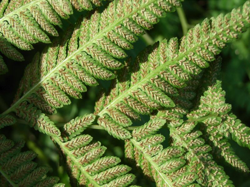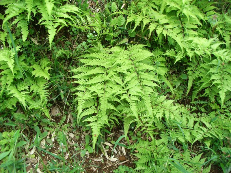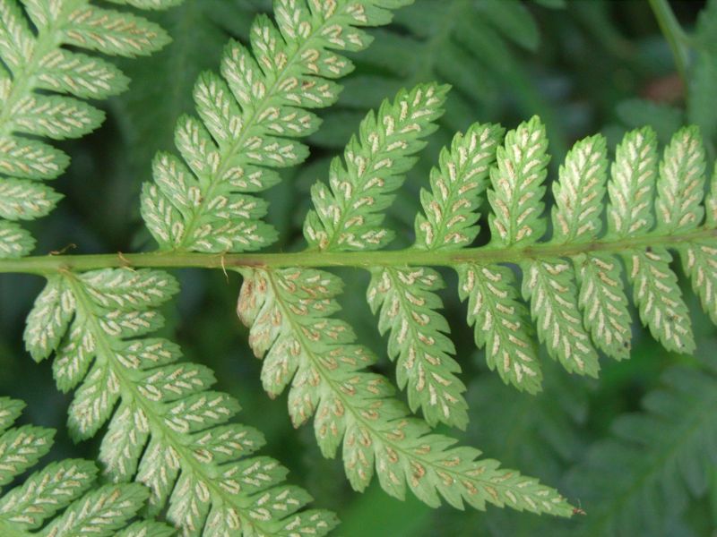 ソーラス(胞子嚢群)は羽片の中肋寄りにつく。(2010/7/19)