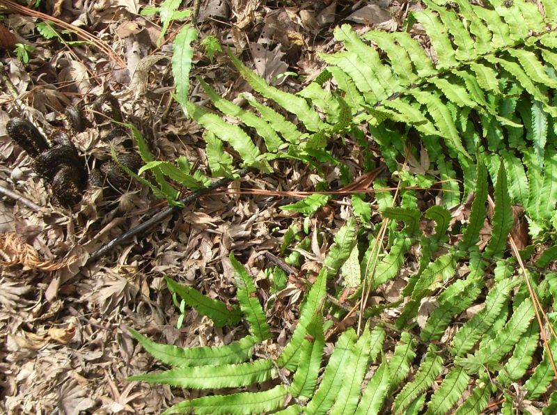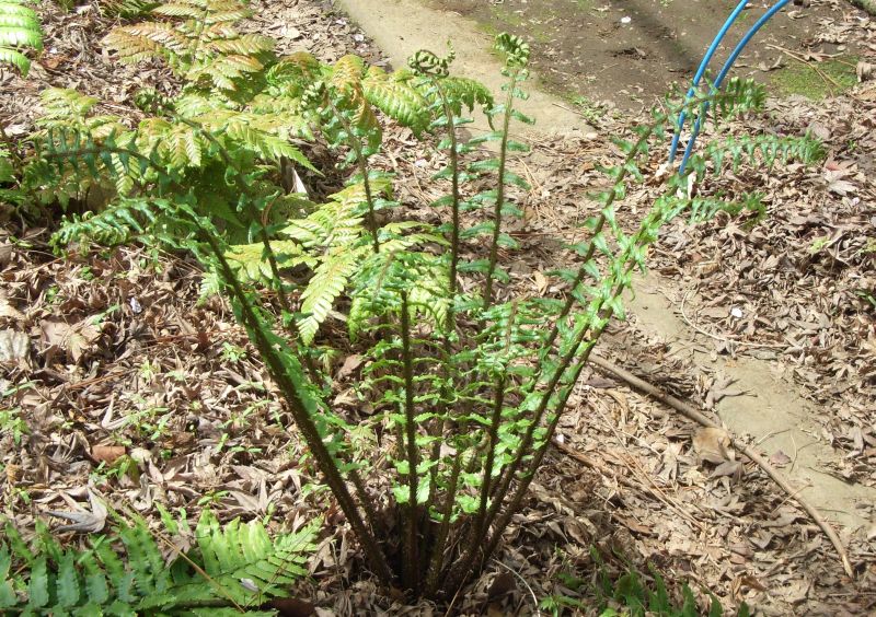 葉柄の基部に黒褐色の鱗片が密生し、先は糸状にのびる。