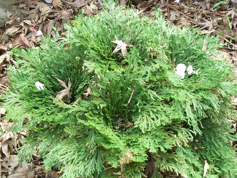 ヒバのような鱗葉が小枝を覆う。