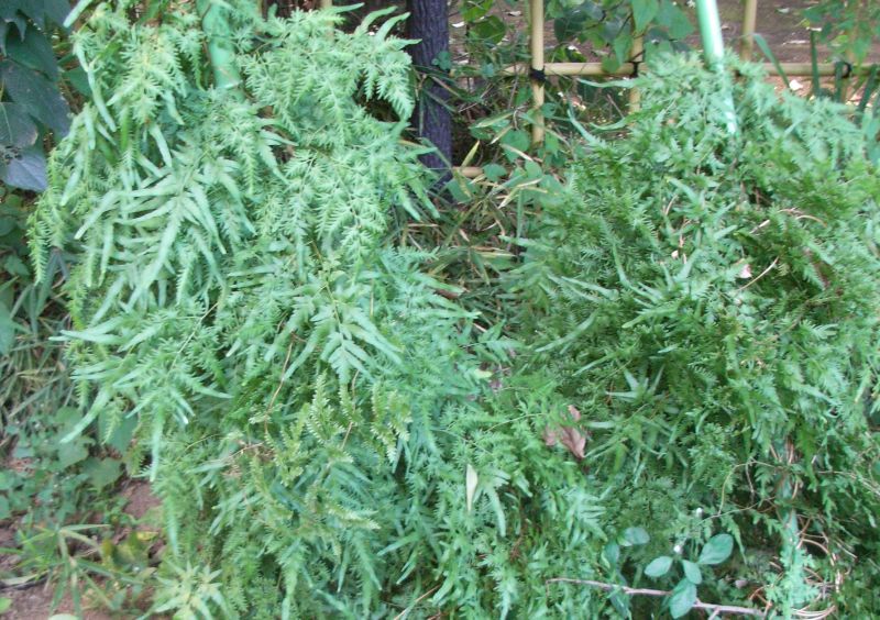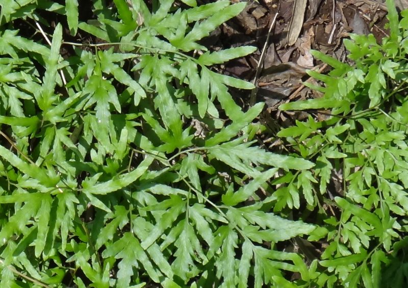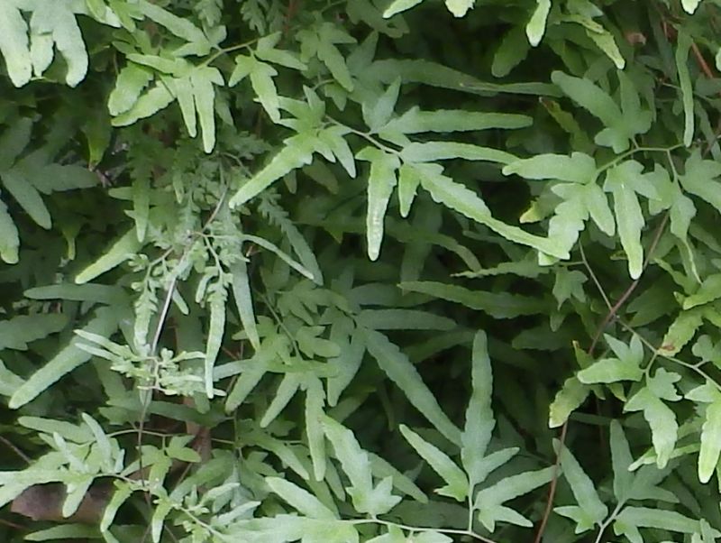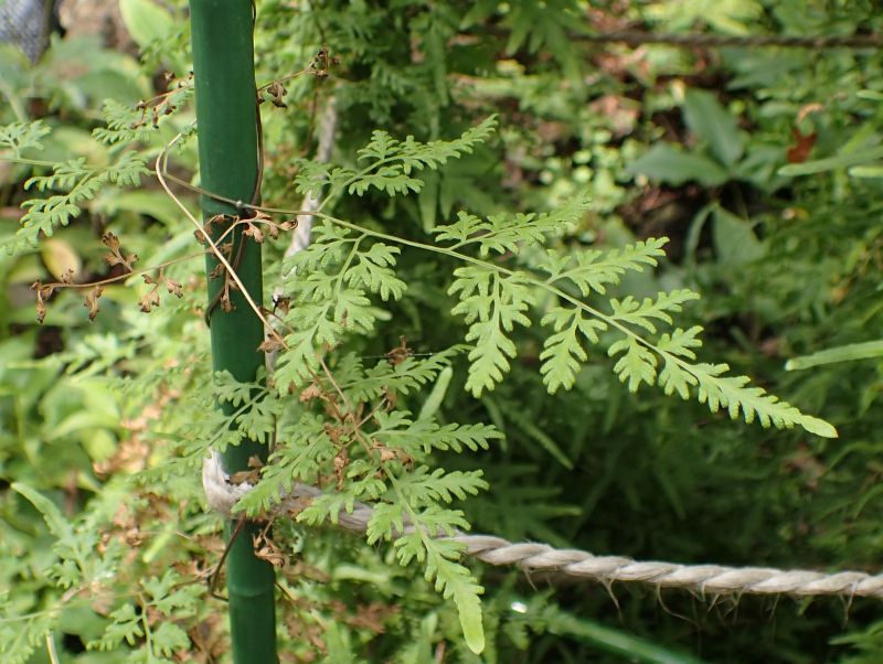 胞子葉。1〜2回羽状複葉形の羽片が対となって出る。(2016/7/27)