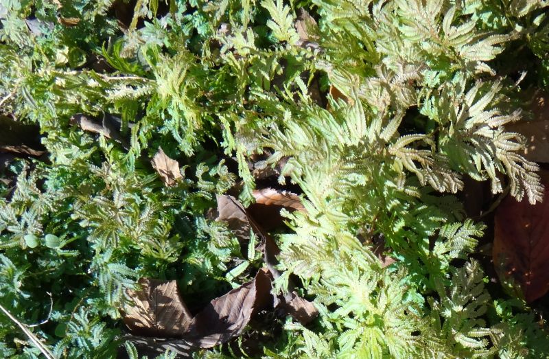 コンテリクラマゴケ:葉が紺色で光沢がある。