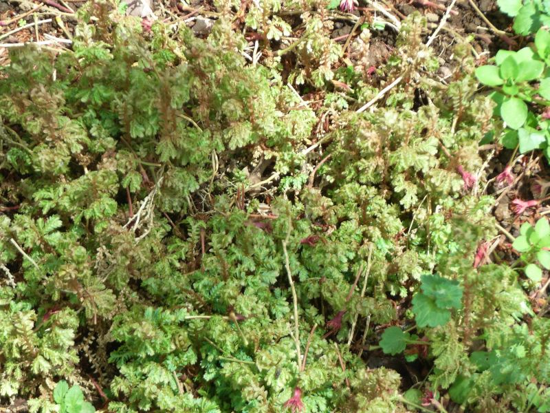 主茎は這ってまばらに分枝し、側枝は羽状複葉を密に広げる。