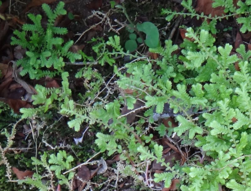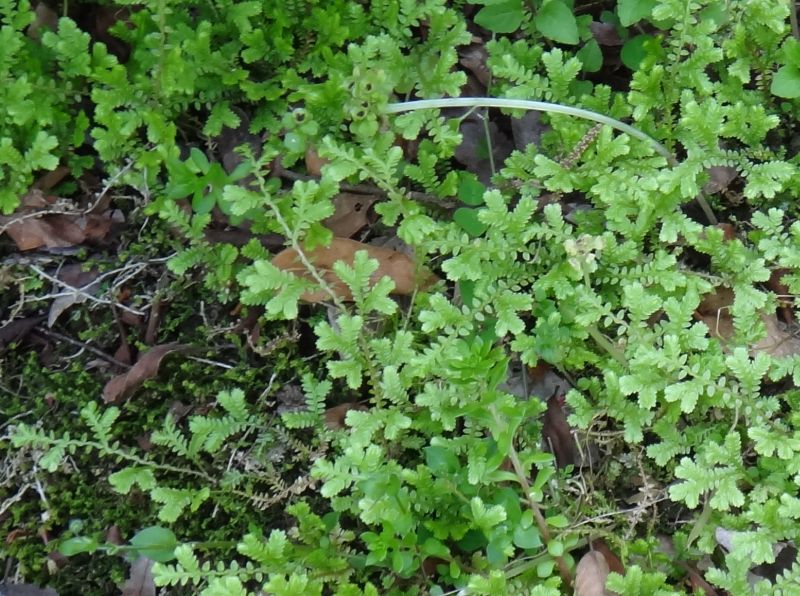 茎の左右に腹葉が並び、茎の上に少し狭い背葉が被さる。(2017/4/17)