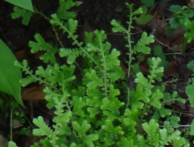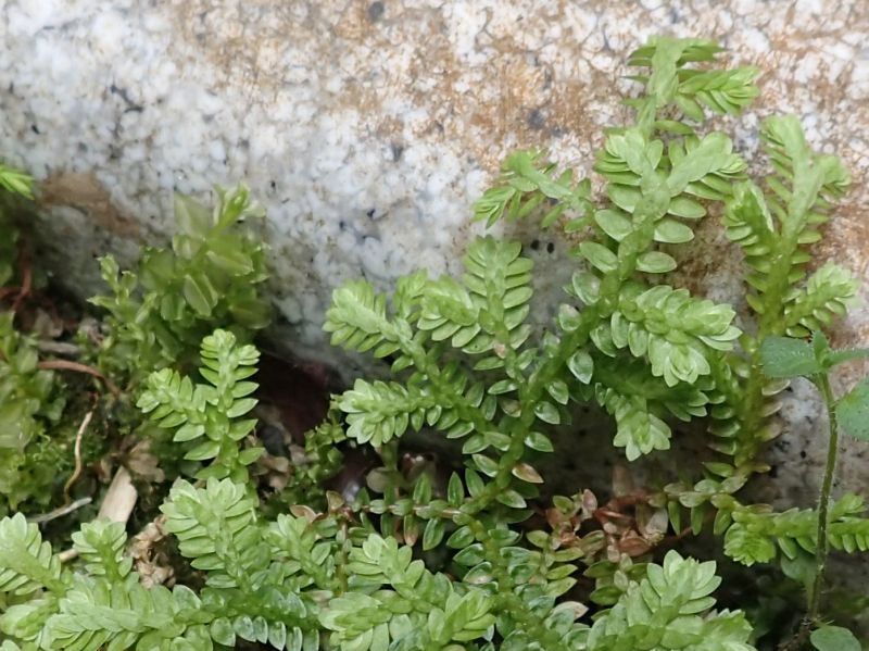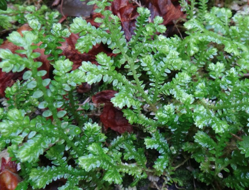 コンテリクラマゴケ:葉が紺色で光沢がある。
