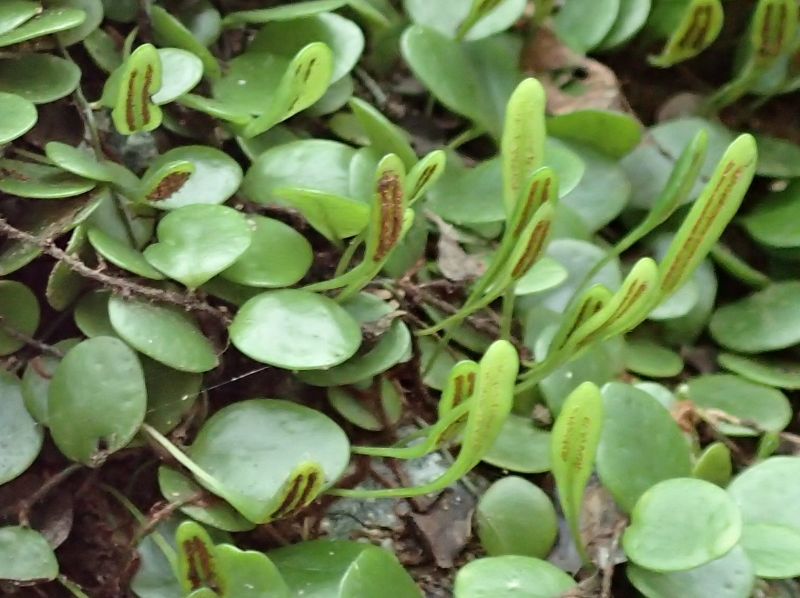 細い茎が這って、緑色の栄養葉と胞子葉をつける。