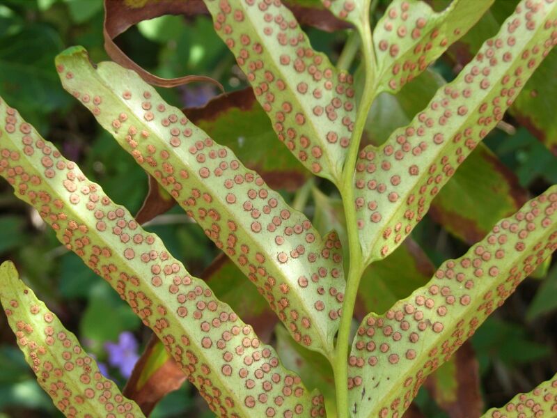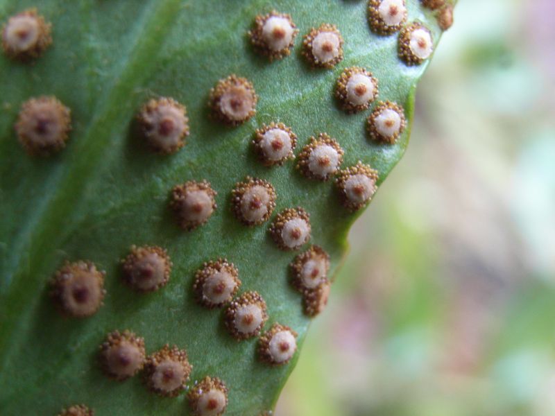 胞子嚢群は円形で、裏面全体にちらばる。