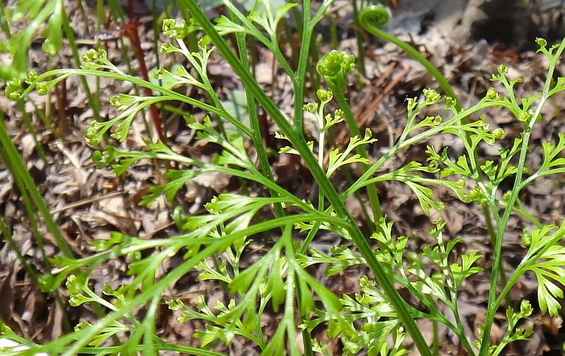 葉身は3〜4回羽状複葉で細かく裂け、鮮やかな緑色である。