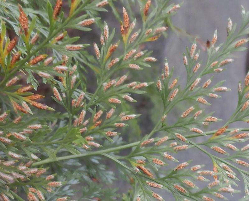 胞子嚢群は裂片の先に細長くつく。