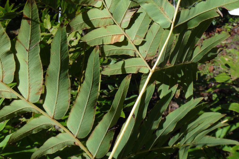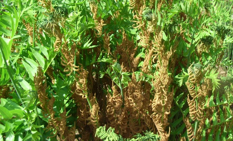 緑色の栄養葉と、胞子で褐色になった胞子葉。