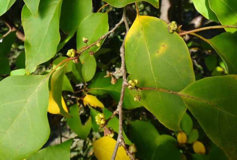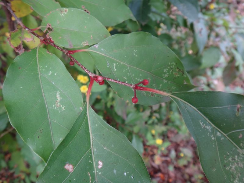 葉は卵状楕円形で互生する。(2015/10/28)