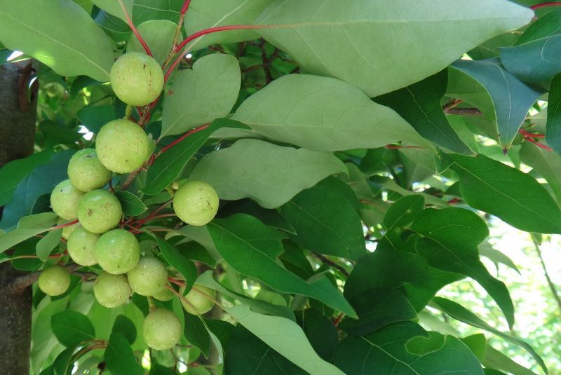 液果が鈴なりとなる。葉裏は淡緑色。