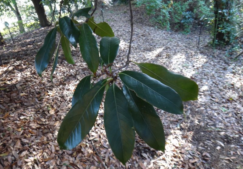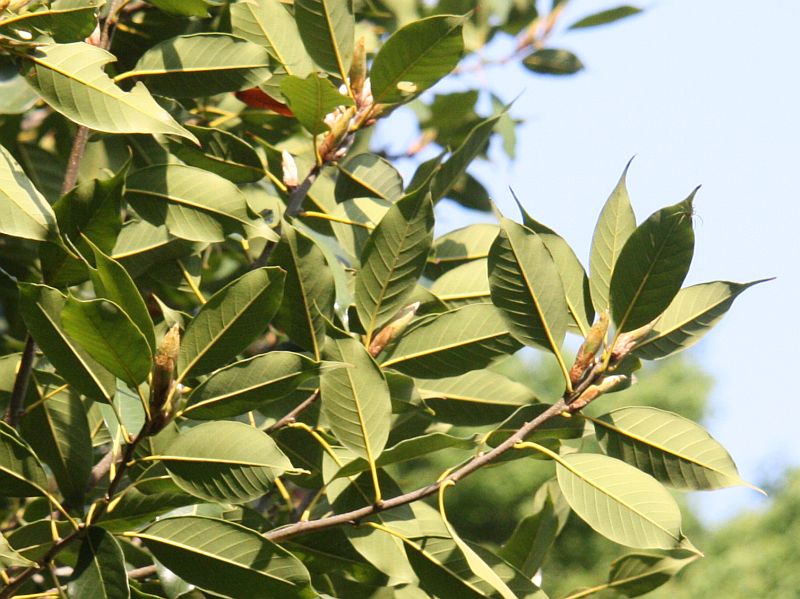 葉は長さ7〜15センチの長楕円形で全縁であり、先端が長くとがり、