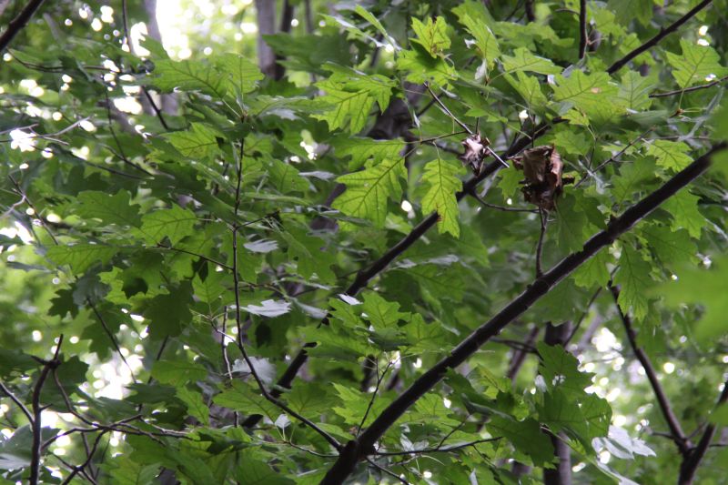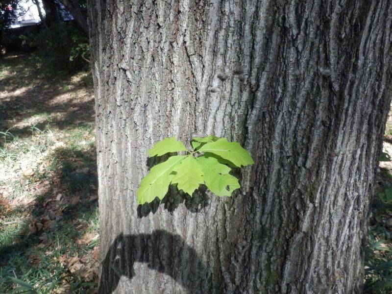 近縁種のアメリカガシワは、葉の幅がやや小さい。